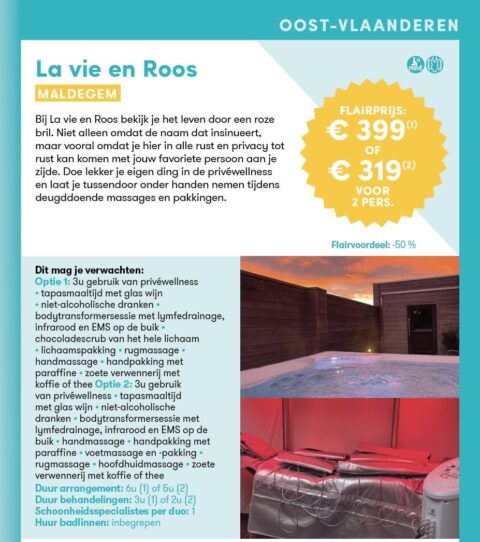 Reserveren kan enkel via mail (roos@la-vie-en-roos.com) of telefonisch op 050/670898.